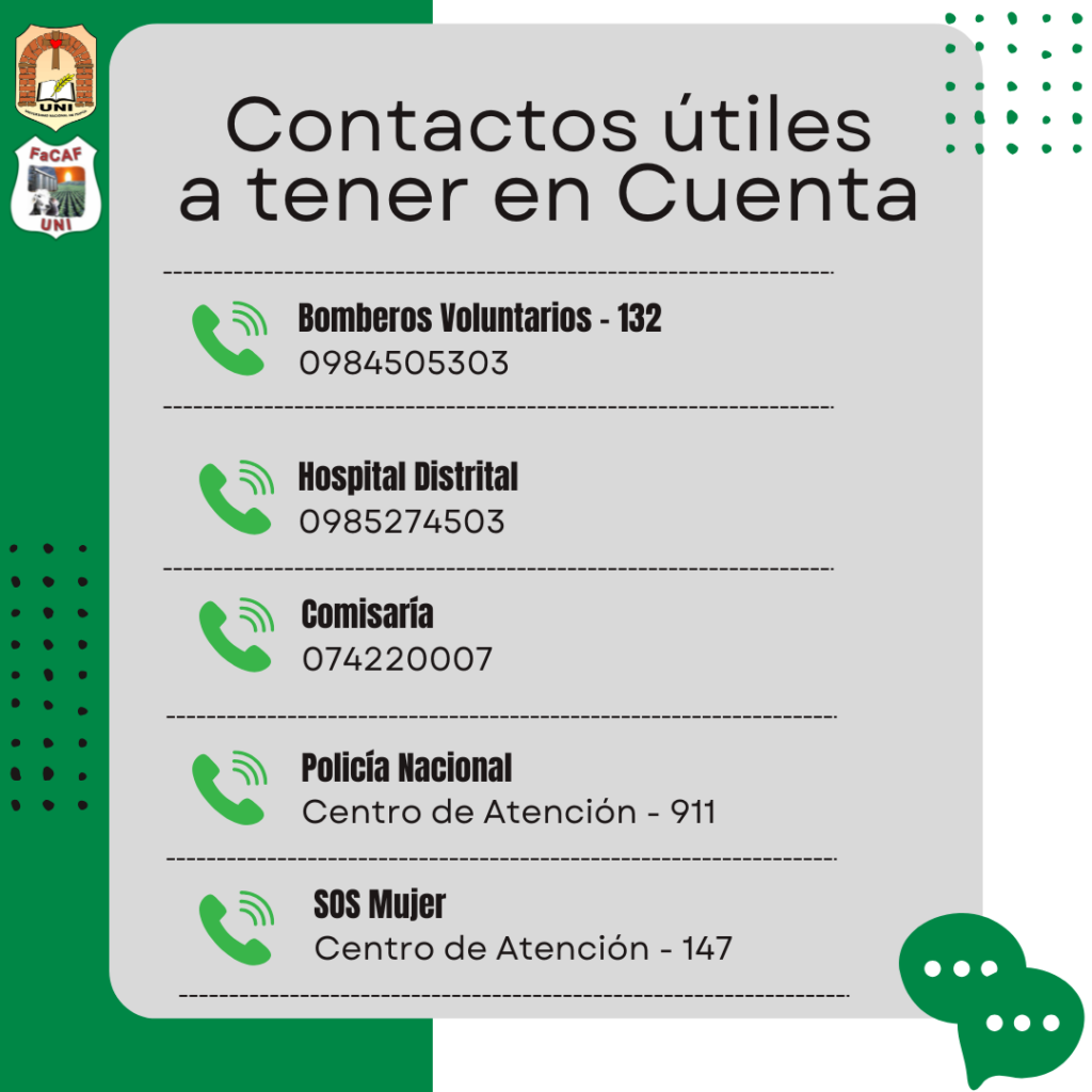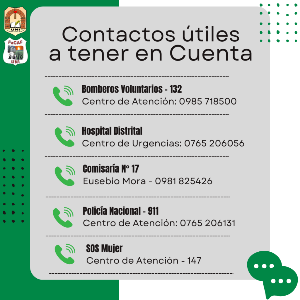 Contactos para casos de urgencia - San Pedro del Paraná