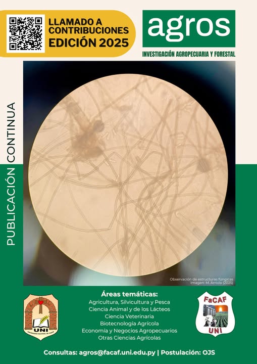 La Revista Científica de la Facultad de Ciencias Agropecuarias y Forestales de la Universidad Nacional de Itapúa lleva por nombre “AGROS: Investigación Agropecuaria y Forestal”. El nombre "AGROS" para la revista de la FaCAF se inspira en la palabra griega que significa "campo de cultivo", simbolizando la esencia y la importancia de la agricultura. La revista se compromete a ser un espacio de difusión de conocimiento objetivo y ético, centrado en el desarrollo sostenible e innovación en el ámbito agrícola y forestal.